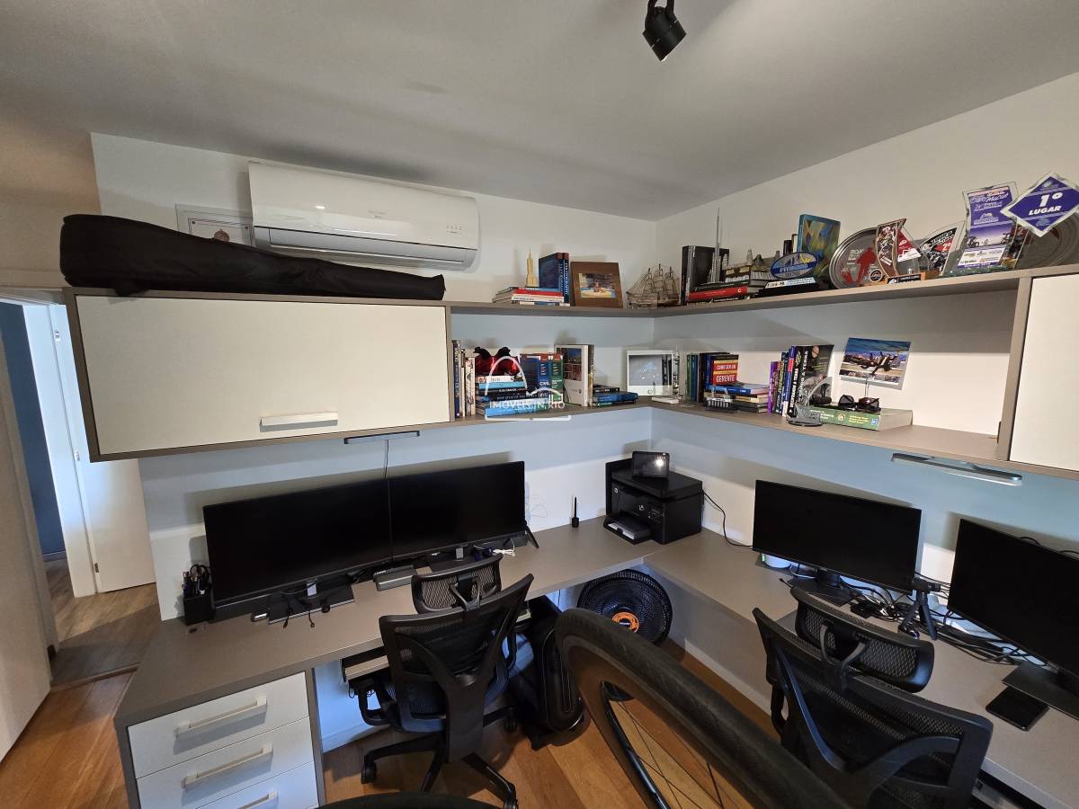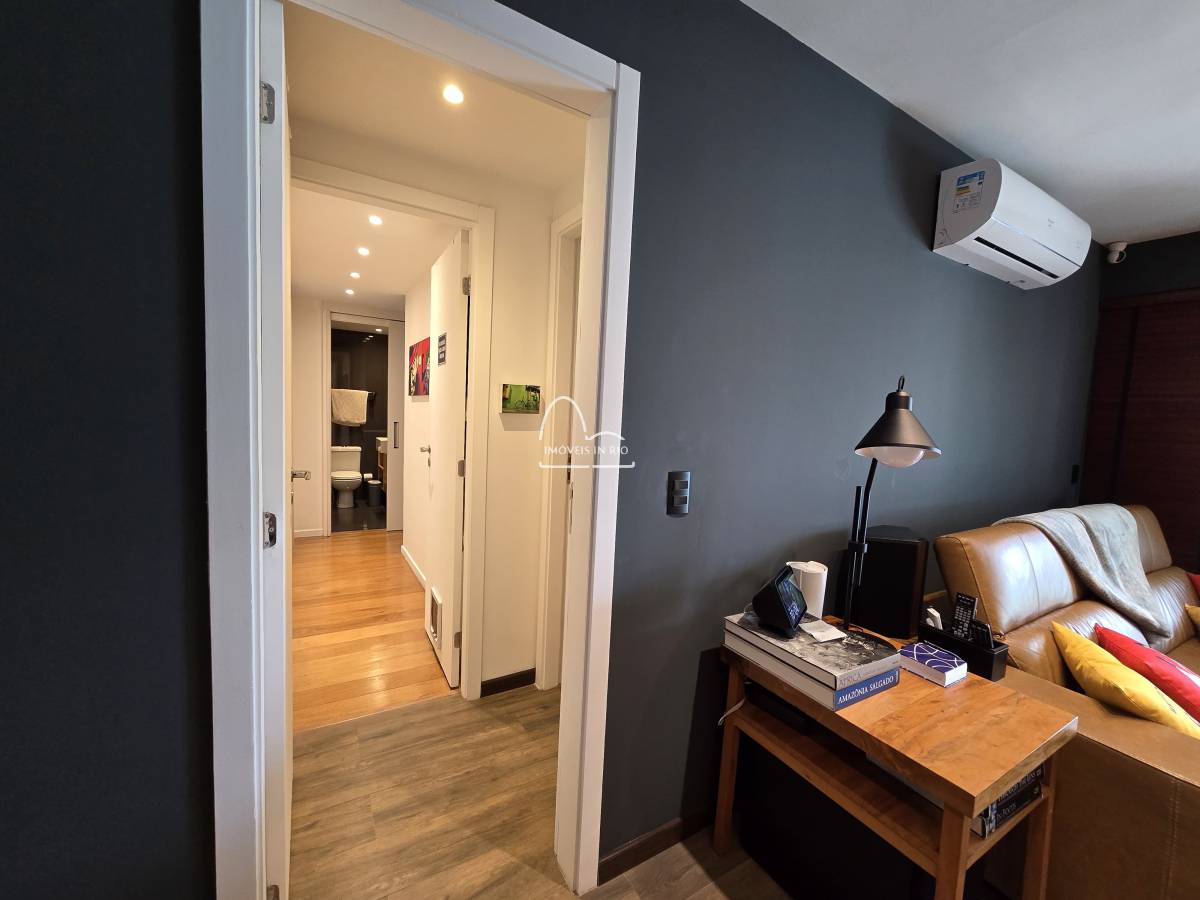 Maravilhoso apartamento de 110m2 no Saint Martin na Península com 2 quartos sendo os 2 suites, sala em 2 amplos ambientes, vista interna e lateral Lagoa, andar alto, sol da manhã, repleto de armários planejados, Split, cortina de vidro e persianas na varanda e 2 vagas de garagem.