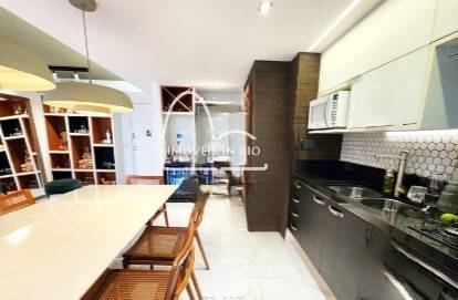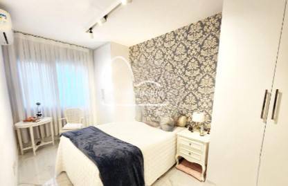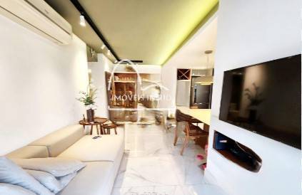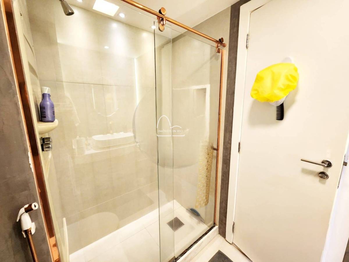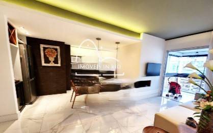Apartamento com 87M², 2 quartos, sendo 1 suíte, banheiro social, sala e cozinha integradas, área de serviço e varanda com fechamento na cortina de vidro. Armários planejados nos dois quartos, banheiros, sala e cozinha.