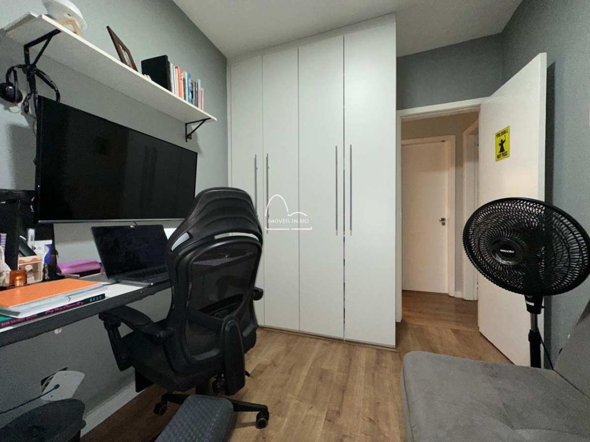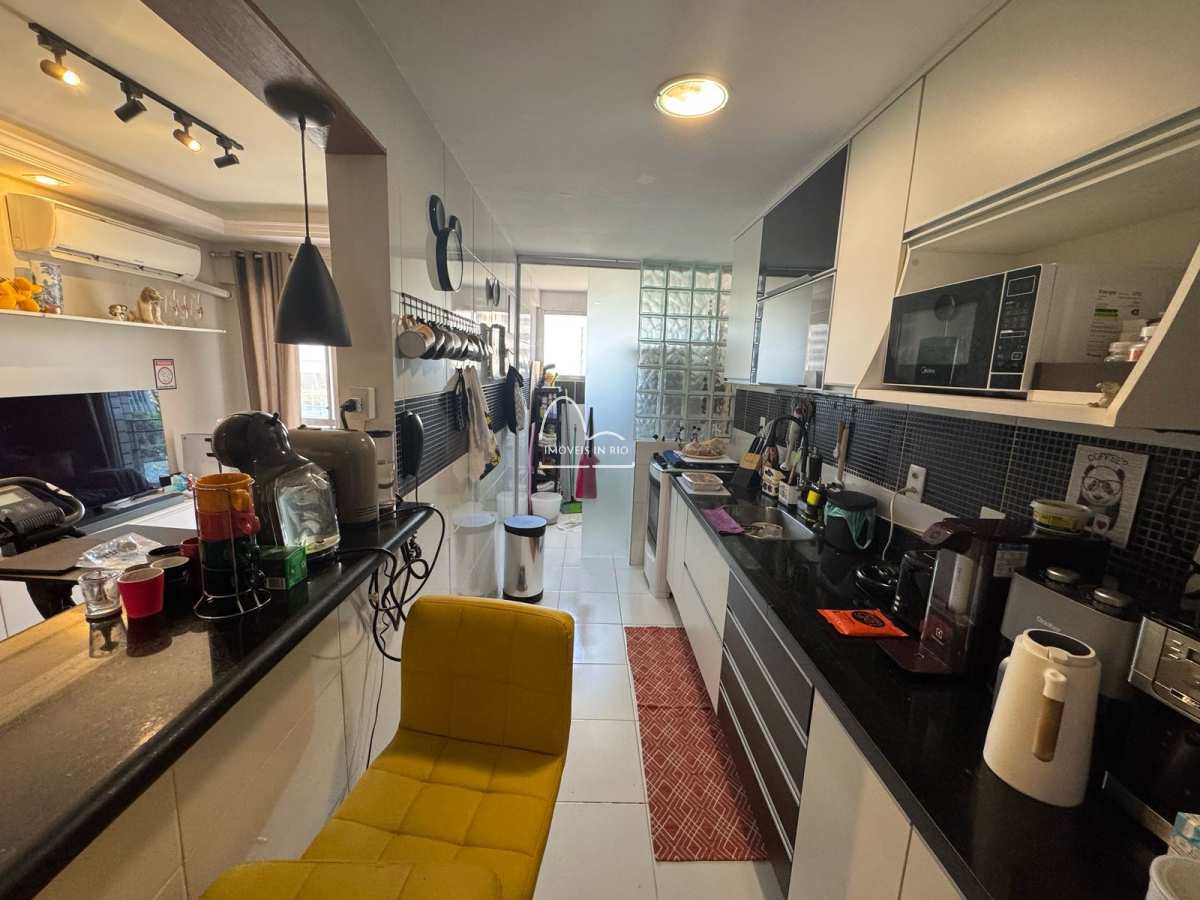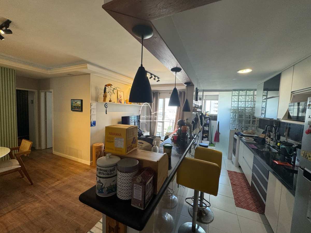 Maravilhoso apartamento de 78m² com 2 quartos sendo um deles suíte no condomínio Jóia da Barra. Sala em dois ambientes com ar Split, varanda com vista aberta, cozinha estilo americana repleta de armários planejados e área de serviço. Banheiro social com armário planejado, espelho e blindex. Quartos com planejados.