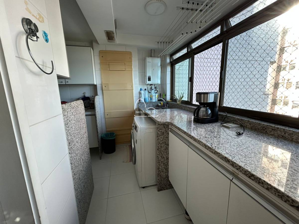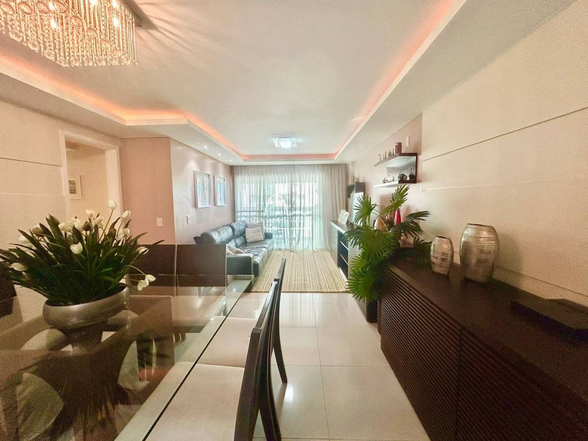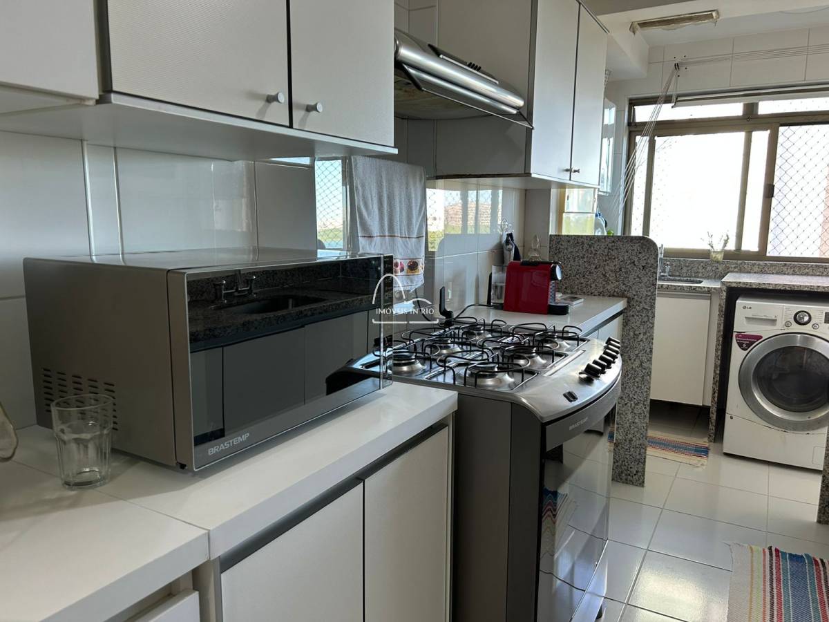 Sala em 2 amplos ambientes, varanda gourmet com churrasqueira e cortina de vidro, lavabo, copa cozinha espaçosa repleta de armários planejados, área de serviço ampla com grande bancada de granito e repleta de armários planejados, dependência completa de serviço (com armários planejados no quarto) e 2 vagas de garagem.