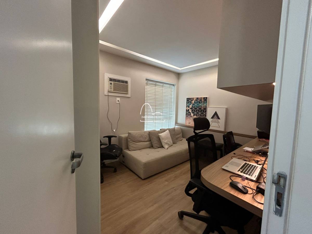 O segundo quarto sendo usado como escritório possui uma linda bancada de trabalho com projeto de iluminação mas também contempla armários planejados;