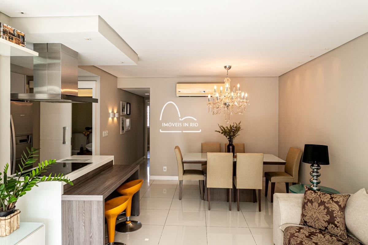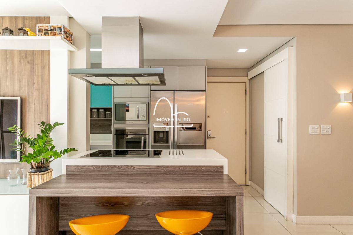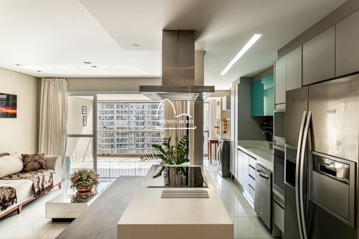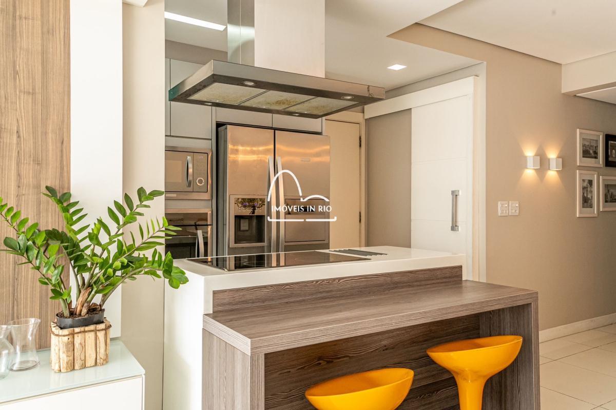 Apartamento completamente decorado e mobiliado, projeto de iluminação, cortina de vidro na varanda, banheiro com dois chuveiros em uma das suítes, cozinha estilo americana, móveis planejados de alto padrão, cooktop por indução, geladeira side by side em inox, lava pratos com 12 serviços, lava e seca roupas de 12kg, microondas embutido, TV Smart de 55 polegadas, mesa, sofá e cama.