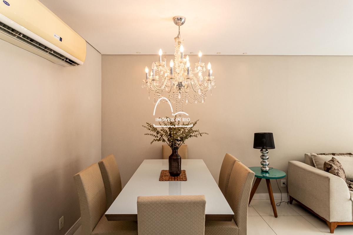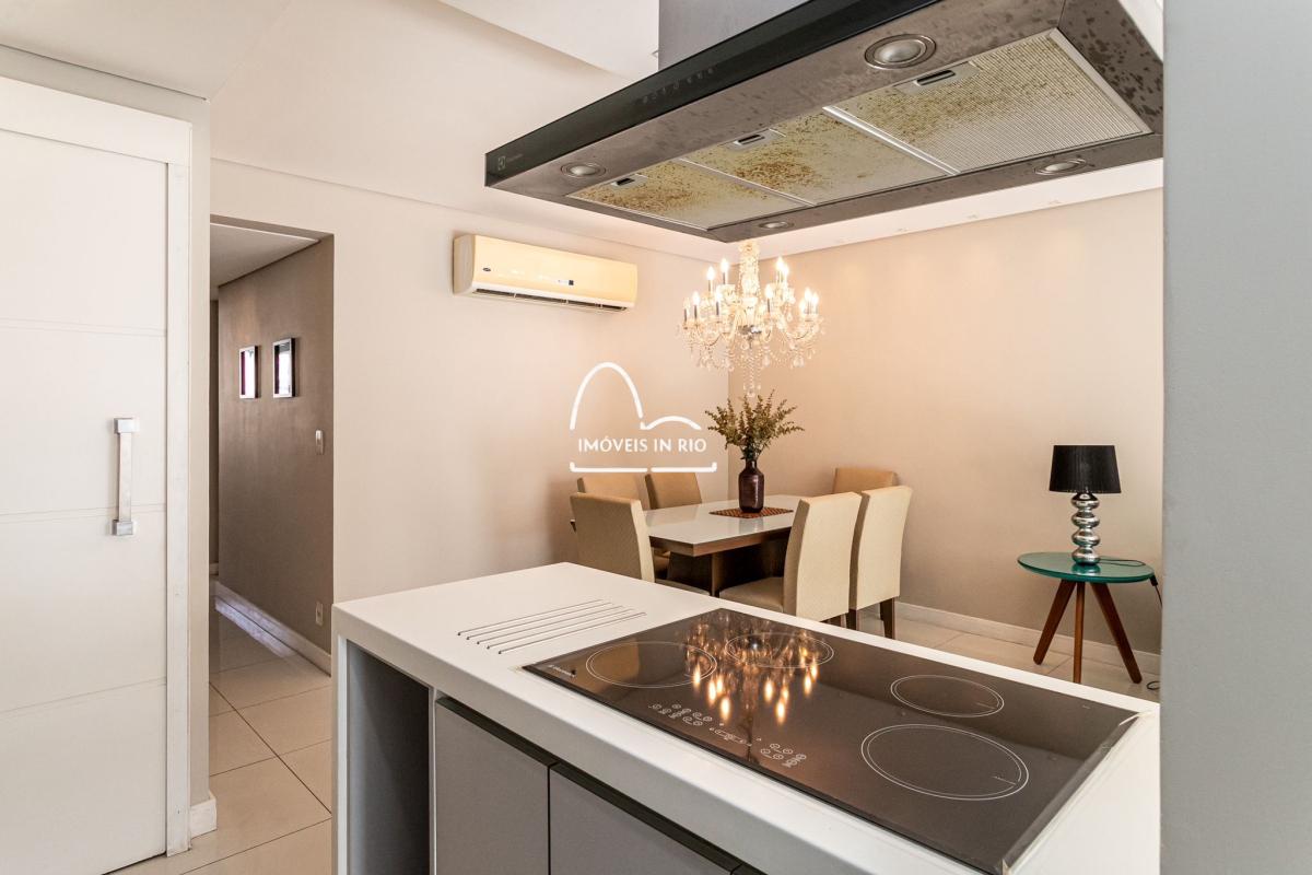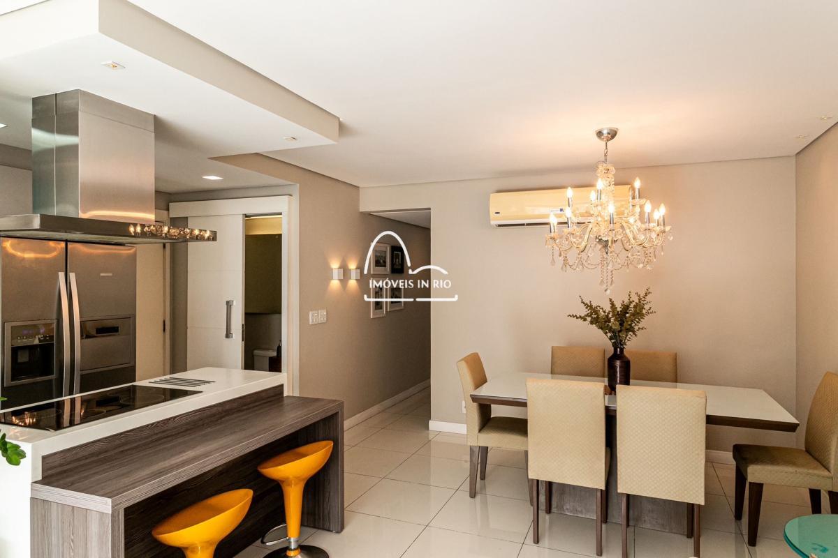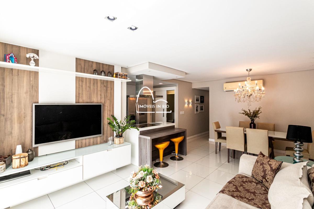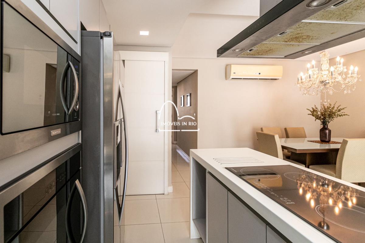 Apartamento completamente decorado e mobiliado, projeto de iluminação, cortina de vidro na varanda, banheiro com dois chuveiros em uma das suítes, cozinha estilo americana, móveis planejados de alto padrão, cooktop por indução, geladeira side by side em inox, lava pratos com 12 serviços, lava e seca roupas de 12kg, microondas embutido, TV Smart de 55 polegadas, mesa, sofá e cama.