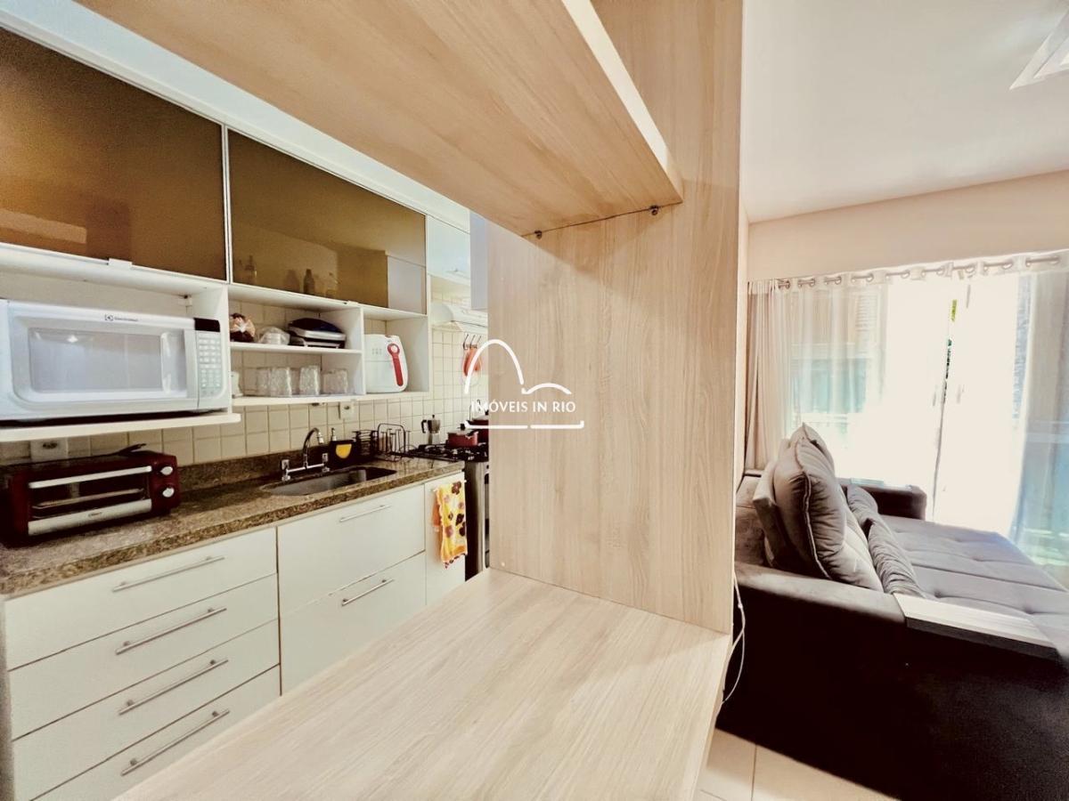 Sala em 2 ambientes, varanda e cozinha ampla com área de serviço, 1 vaga de garagem.